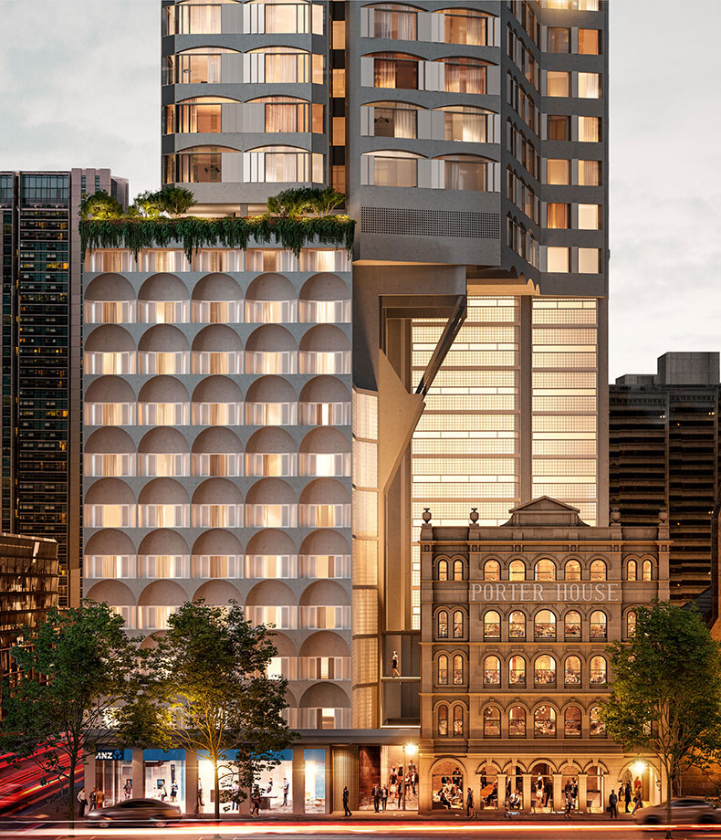 At the corner of Castlereagh and Bathurst Streets in Sydney’s CBD, this $380m mixed-use development incorporates the heritage-listed Porter House, which we will transform into a luxury, 122-room, boutique Accor hotel – Porter House Hotel, Sydney – MGallery .